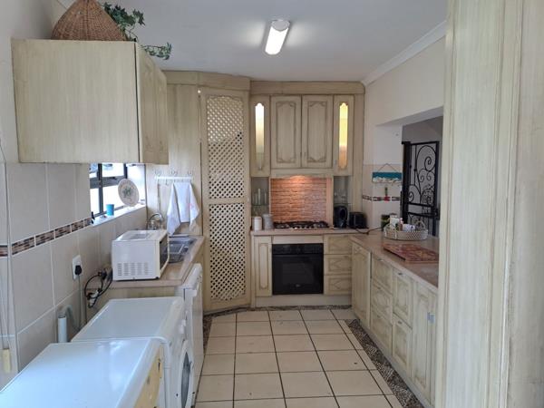 House in secure estate. Tucked away in the secure complex of Berrisford Place, this delightful 3-bedroom, 2.5-bathroom family home is a true retreat. Step into the spacious open-plan living and dining area, complete with a cozy fireplace, which flows effortlessly into a vibrant garden. The garden features a magnificent large tree and a tranquil water featureperfect for relaxation and entertaining guests. The kitchen, designed in an open-plan layout and equipped with a gas hob, offers ample cupboard space to meet all your culinary needs.