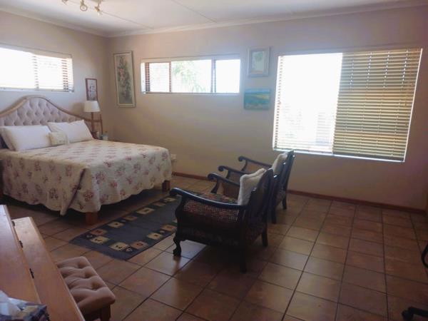 The lush garden at the back of the property, shaded by mature trees, offers a peaceful retreat for relaxation or play. Perfectly situated in Stilbaai, known as the Bay of Sleeping Beauty, residents enjoy Blue Flag beaches, a serene estuary, and a warm community atmosphere.
