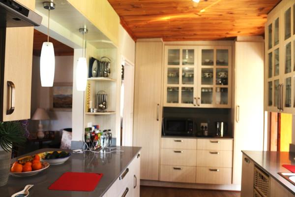 It has an established garden, and the yard is fully enclosed to accommodate your beloved dogs. The paved way is lined with a shaded net for visitors to park. The double garage offers more than enough space for a handyman or storage. Water tanks.