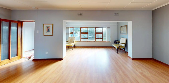 The home boasts a spacious living area with a sunny sunroom, two bedrooms with ample built-in cupboards, and a third room that can easily be used as a study or home office. The generous kitchen is fitted with an undercounter oven and a separate pantry, making it both practical and convenient. Outside Braai area, for entertaining.