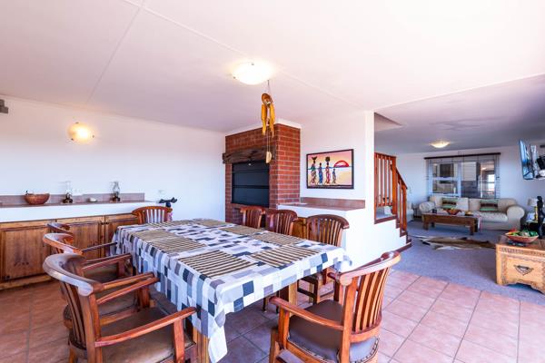 Situated on the other side of the house you will find the tv lounge with kitchenette, two bedrooms with access to the patio and shared family bathroom. This part of the house can function separately from the main house as it has a separate entrance. Ideal for a granny flat or as a work from home space. The groundfloor consists of the main entertainment space with open plan lounge braai room. Large sliding doors lead to the outside patio where you can enjoy a splash in the Jacuzzi while enjoying the amazing views. The games room, third bathroom and Sauna rounds off the ample entertainment space.