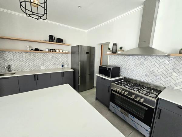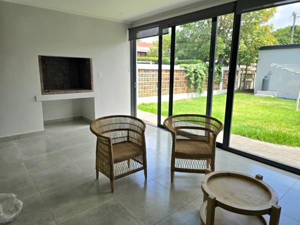 Nestled within the tranquil embrace of a well-established neighborhood, this newly renovated three-bedroom home offers a harmonious blend of contemporary elegance and timeless appeal. The open-plan design seamlessly connects the kitchen, lounge, and dining room, creating a spacious and inviting living area. A built-in braai adds a touch of warmth and functionality, perfect for entertaining guests or cozy family gatherings.