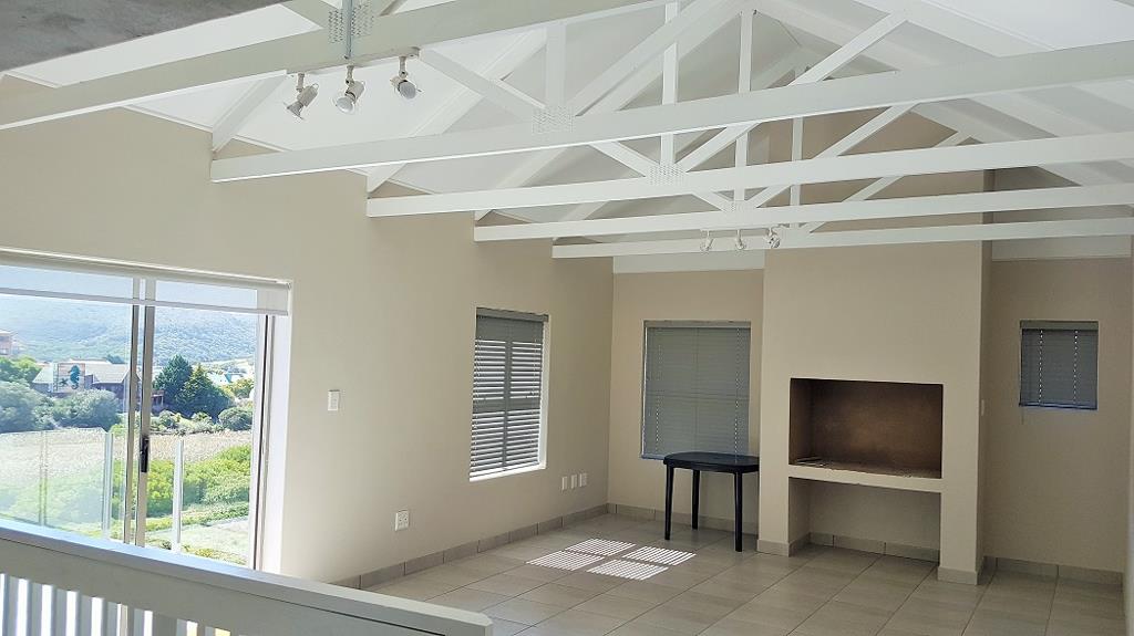The upper level features an open plan kitchen with a spacious open living/entertaining area with built-in braai. The main bedroom with its en-suite bathroom, is also upstairs. Lovely views can be enjoyed from both balconies upstairs and downstairs.
