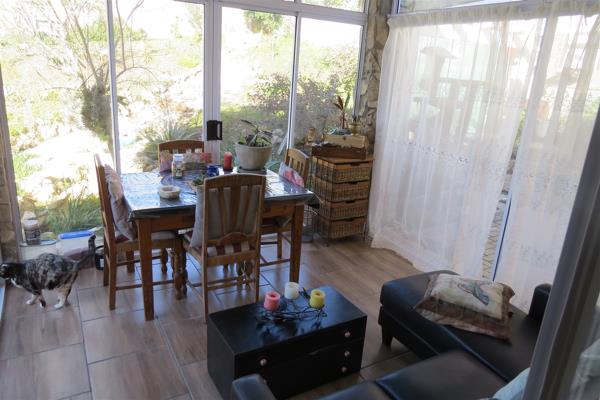 The open plan kitchen, dining and TV room with built in braai area is perfect for entertaining family and friends. Leading off the TV room is a sun room and an additional area that can be used as a study. Three comfortable bedrooms with one en-suite full bathroom. The second bathroom features a shower, WC and basin.