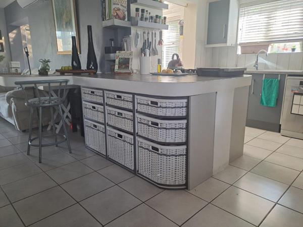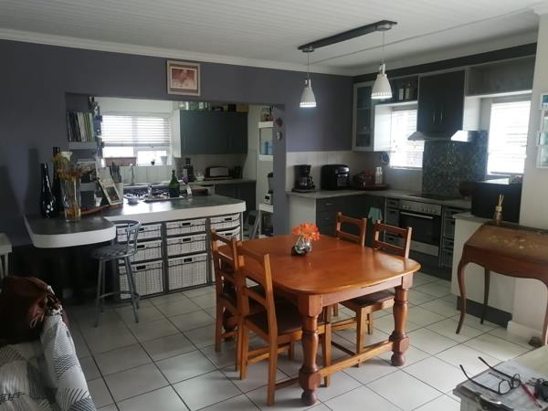 The house boasts three spacious bedrooms. The main bedroom has an en-suite bathroom. Ample built-in cupboards, providing plenty of storage space. The open plan living area creates a welcoming space for family and friends to gather. The built-in fireplace adds to the coziness of the room. The kitchen is equipped with an abundance of storage space, ensuring you have room for all your kitchen essentials. Additionally, theres a separate scullery that helps keep the kitchen area tidy.