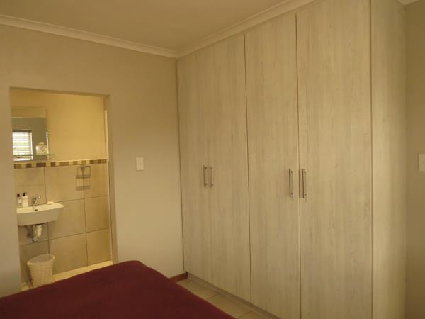 Enjoy the upstairs spaciousness of the open-plan layout, seamlessly connecting the living, dining and kitchen areas, and master en-suite bedroom. The living room features exposed roof trusses, an indoor braai and opens onto a balcony overlooking the garden and Kloof. The kitchen boasts ample built-in cupboards and under counter electric oven and hob.