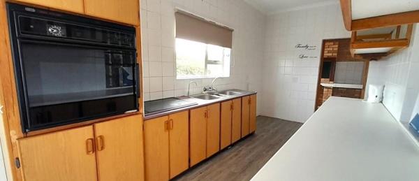 The dining area seamlessly connect to the semi open-plan kitchen featuring convenient connections for a washing machine and dishwasher, an electric glass hob/oven and melamine counter tops. Adjacent to the kitchen is an indoor built-in braai, leading out to the back garden with stunning farm and fynbos views. The fire pit (boma) area is ideal for creating unforgettable memories with loved ones, surrounded by a picturesque landscape.
