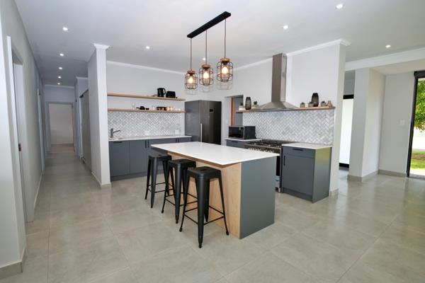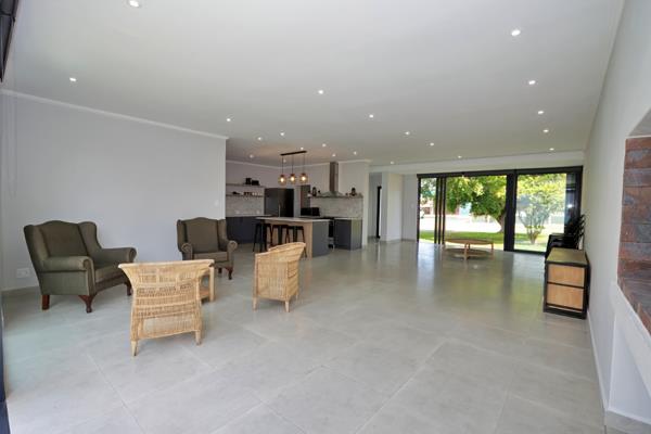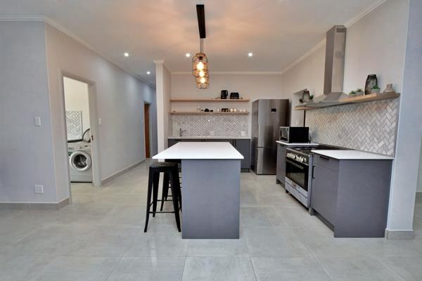 Step into this exquisite 3-bedroom residence, where modern elegance meets everyday comfort. From the moment you enter, youll be captivated by its contemporary design and thoughtfully curated features. The expansive open-plan living area, bathed in natural light, invites you to relax and entertain with ease. A built-in braai adds a touch of convenience, effortlessly extending to the lush garden for seamless indoor-outdoor living.