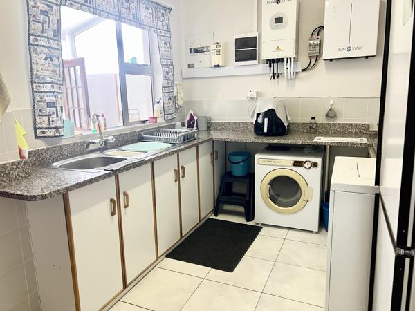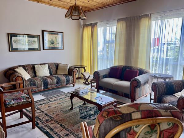 The living area has a lounge (with fireplace), dining room as well as a practical study. The kitchen in the heart of the home, provides ample counter and packing space. This neat and practical kitchen has a separate scullery with laundry facilities.