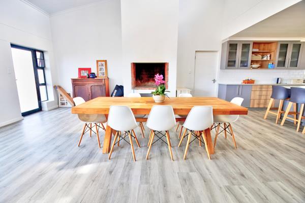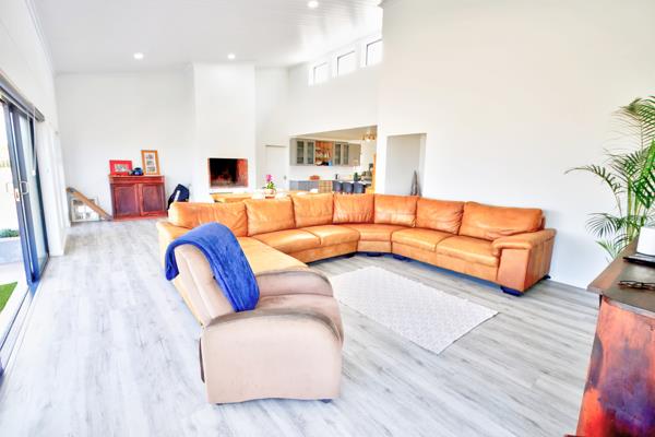 Outside, a sparkling blue swimming pool invites endless summer fun under the warm Garden Route sun. The property also features double automated garages, ensuring both security and practicality.