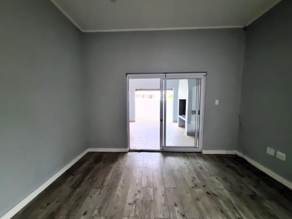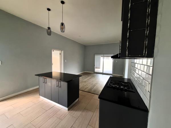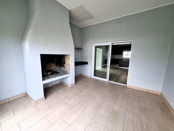 3 Bedrooms with 2 bathrooms, open plan kitchen and living area and a sizeable patio with built in braai.