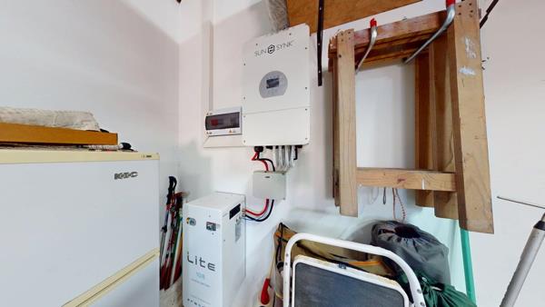 Three generously sized bedrooms, each feature ample built-in cupboards with the main bedroom offering a full en-suite bathroom while the two additional share a guest bathroom. The double garage has direct access to the kitchen, making it super convenient for bringing in groceries or heading straight inside.Furthermore, this property is equipped with 12 solar panels, 2 backup batteries and 1 inverter ensuring reliable off-grid power and significant energy savings. The surrounding garden is very manageable with ample legroom for your furry friends.