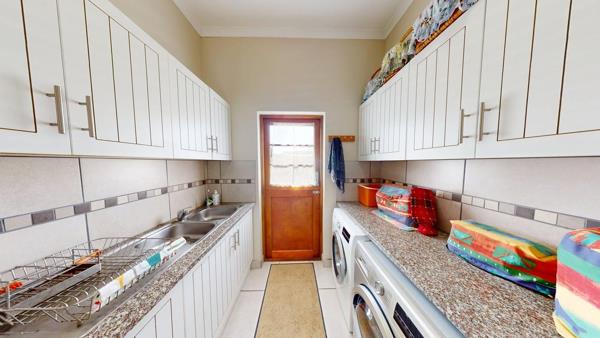 Whether youre looking for a serene holiday home or a peaceful place to downsize, this property is the ideal choice. The house itself sits on a flat 488m free-standing stand, providing privacy and independence. The open plan living, dining and kitchen area contribute to a spacious and inviting atmosphere. Sliding doors lead to the under covered stoep which hosts a built-in braai and prep bowl for added comfort. The open plan kitchen with neatly tucked away scullery has ample built-in cupboards, granite countertops, electric undercounter oven, gas hob and air purifier, create a fantastic family orientated setting.
