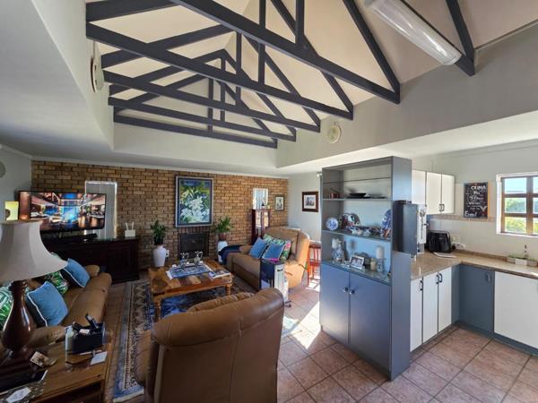 Step inside to sun-drenched interiors and thoughtfully designed living spaces that capture the warmth and beauty of the surrounding landscape. With five generously sized bedrooms each with built-in cupboards and three modern bathrooms, perfect for families or hosting guests in comfort and style. Multiple living and dining areas include a sunny lounge featuring expansive picture windows and a built-in braaiideal for entertaining or simply enjoying peaceful evenings at home. The well-equipped kitchen is a dream for culinary enthusiasts, boasting marble countertops, a gas hob, electric eye-level oven, and abundant cabinetry for all your storage needs.