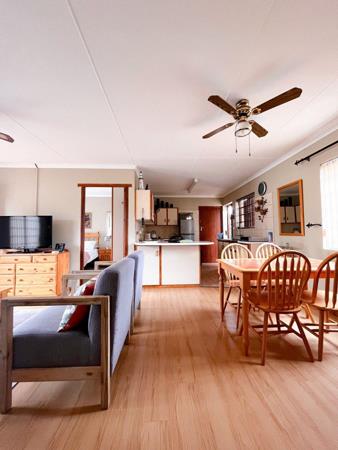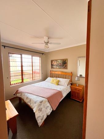 It boasts two sunny bedrooms with built-in cupboards (BIC), ensuring ample storage space. Additionally, there is a multi-functional loft room, which could serve various purposes such as an additional bedroom or office. Leading from the open plan living space (kitchen and dining room), you will find an enclosed braai room.A small lawn, and a garden bed with hardy plants, enhancing its appeal and providing outdoor space for relaxation.