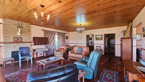 Positioned on the prestigious Waterkant Street in Stilbaai, this extraordinary home offers an unmatched lifestyle where comfort meets breath-taking natural beauty. Set on an 857m2 stand with uninterrupted views of the river, ocean and mountains, the property blends solid craftsmanship with timeless charm. Upon entry, youre welcomed into a spacious living and dining area with a fireplace and panoramic windows framing the scenery. The heart of the home is a vast country-style kitchen overflowing with storage, complemented by a separate scullery and separate laundry room. A generous double garage with soaring ceilings connects to a huge carport, paved neatly and flanked by a staff room and extra storage room. The entertainment room with built-in braai invites lively gatherings, while 3 expansive bedroomsplus a study perfect for conversionoffer tranquil retreats. The main suite is a sanctuary with its en-suite bathroom. A rare opportunity to own a property that truly has it allspace, quality, and the address that says you''ve arrived.
