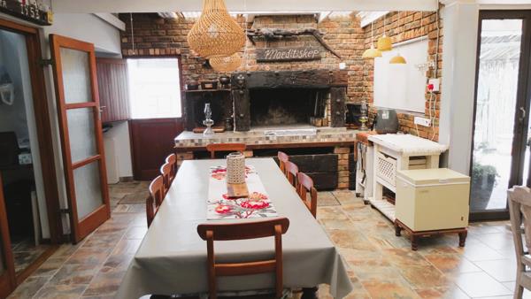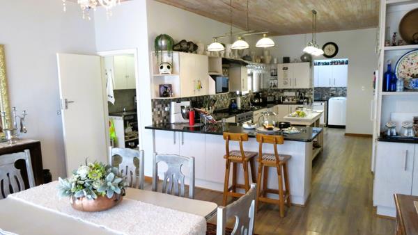 A kitchenette-style passage off the dining area houses the solar system with inverter and battery setup. The kitchen extends into a scullerylaundry, which in turn opens to a generous indoor braai and dining area, as well as a second loungeperfect for hosting family and friends.