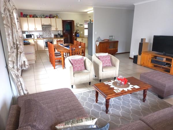A separate fourth bedroom, complete with shower, toilet, basin, kitchenette, and private external entrance, provides ideal space for guests, extended family, or a home office. The heart of the home is the expansive open-plan living, dining, and kitchen area, which flows seamlessly into a braai room and onto a covered outdoor braai patio perfect for entertaining or enjoying relaxed, coastal evenings. Equipped with a 8KVA inverter and six solar panels, this home combines practical, sustainable living with peace of mind, making it a truly smart choice for the modern family seeking comfort, convenience, and low-maintenance style.