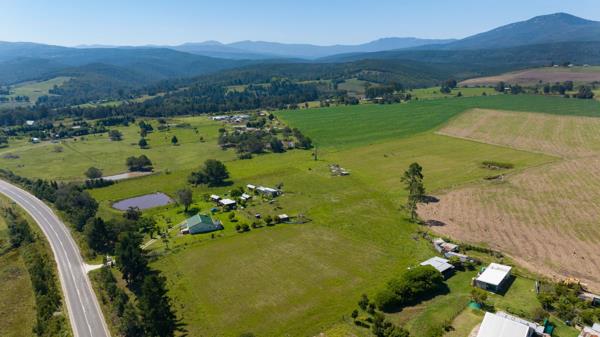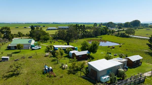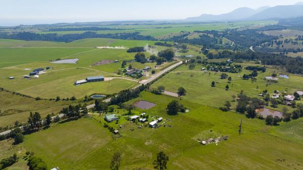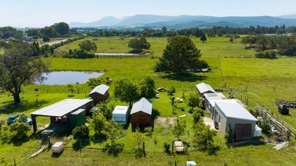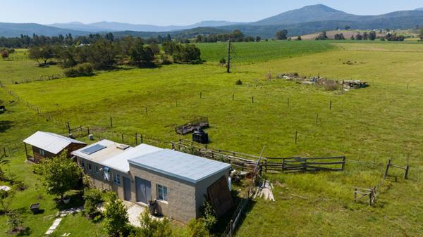5.2 Hectares Smallholding with panoramic views Hoekwil. New improved price. Dreaming of a little farm in Africa? This is it! The cleared, and level property is perfect for raising cattle and growing crops. The property already boasts multiple established fruit trees. Indicators of underground water give it the opportunity of a borehole to supplement the 2 dams and water tanks (capacity of 25,000 liters) Electric wired camps and Eskom 3 phase electricity. Zoned Agricultural I.