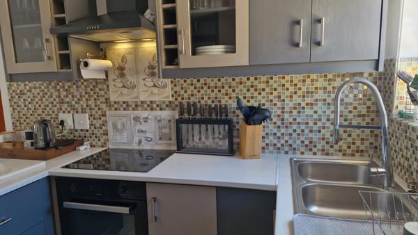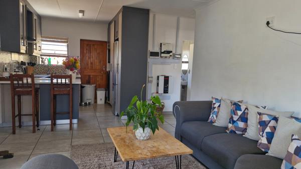 Additional features include a single extra-length automated garage that promotes sustainability, alongside a 3KVA inverter paired with solar panels to reduce energy costs significantly. Security is paramount in this residence, it has burglar bars throughout as well as an electrical fence surrounding the entire property, providing peace of mind for all occupants. In summary, this enchanting two-bedroom abode artfully combines comfort with modern amenities in a tranquil setting.