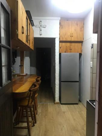 The garage has been converted into studio apartment with a dining room with a built-in braai, a small bathroom with a small bath and toilet, basin, a large bedroom a kitchenette, small scullery and a walk-in pantry. This is studio apartment can be used as an investment for Airbnb or monthly rental.
