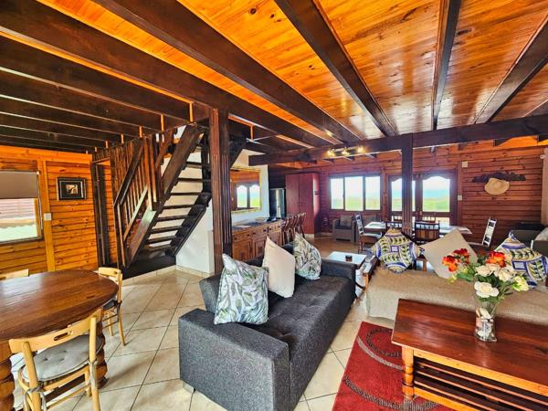 The ground floor features a bright and airy living area with large windows framing the ocean, filling the home with natural light. Two generously sized bedrooms share a stylish bathroom, while the expansive stoep area complete with a built-in braai is the perfect spot to soak in breathtaking sunsets and the sound of the waves.