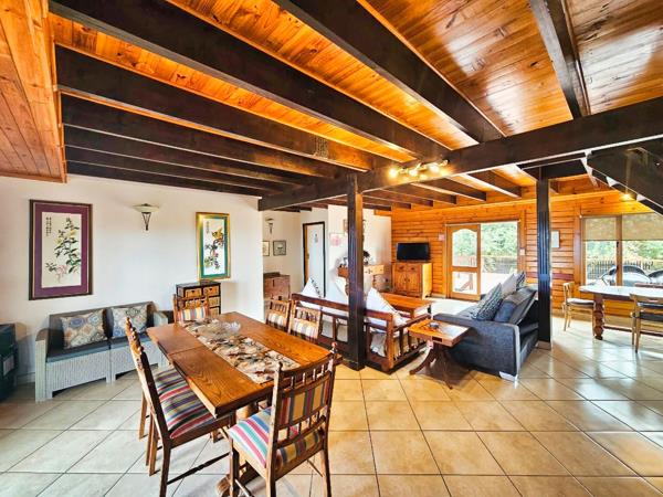 At the back of the property, a stunning deck with a swimming pool offers a private retreat with a glimpse of the ocean, complemented by another braai area for entertaining family and friends. Additional features include a Wendy house, undercover parking, and a fully fenced yard perfect for pets and children to enjoy safely.