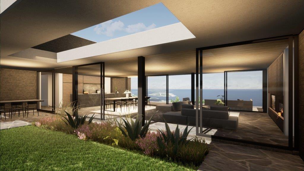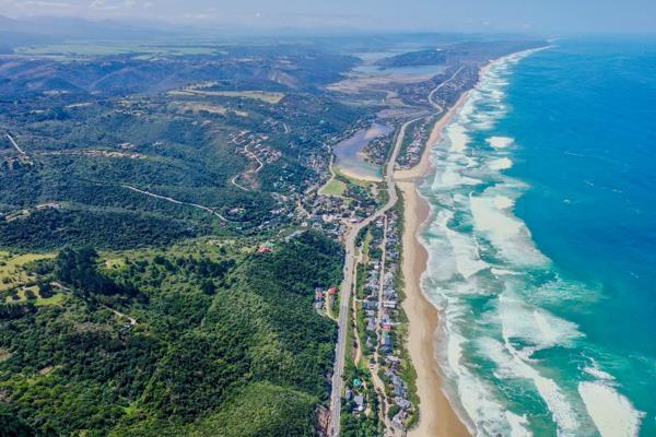 Nestled at the pinnacle of this beautiful region, the property provides magnificent vistas of the Indian Ocean and the Lagoon. On clear days, you can enjoy an expansive view stretching down the coastline to Gerikas Point in Sedgefield, with additional sights of Island Lake, Rondevlei, and Swartvlei in the distance.