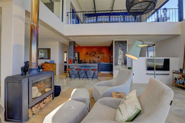At the heart of the home is a double-volume living area, where floor-to-ceiling stacking doors open onto a sun-drenched deck - perfect for sunrise vistas or relaxing under a canopy of stars. The well-designed kitchen includes a scullery and walk-in pantry, while a combustion fireplace adds warmth and charm.