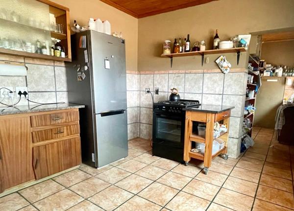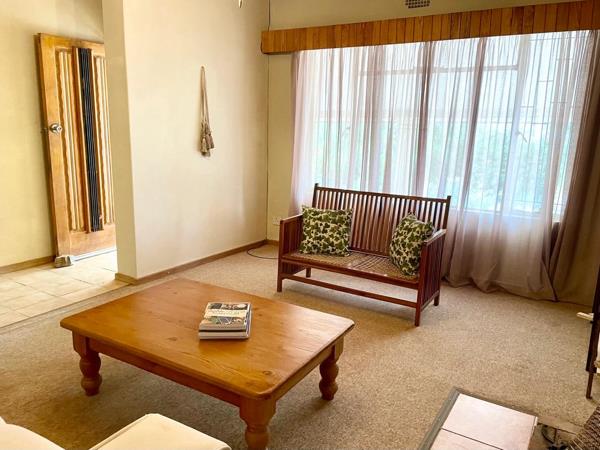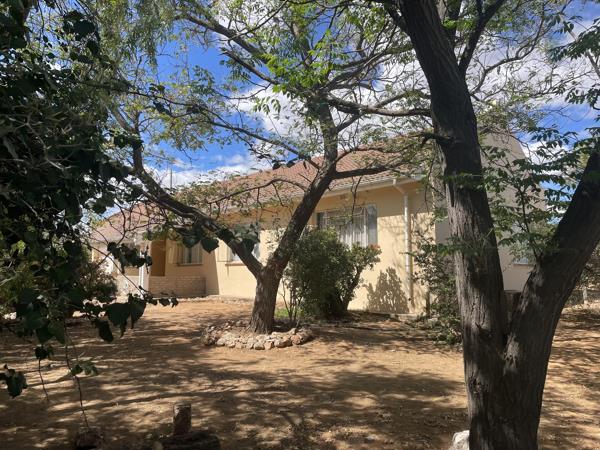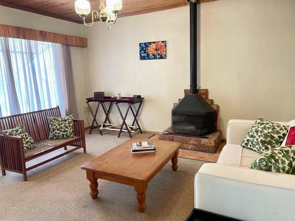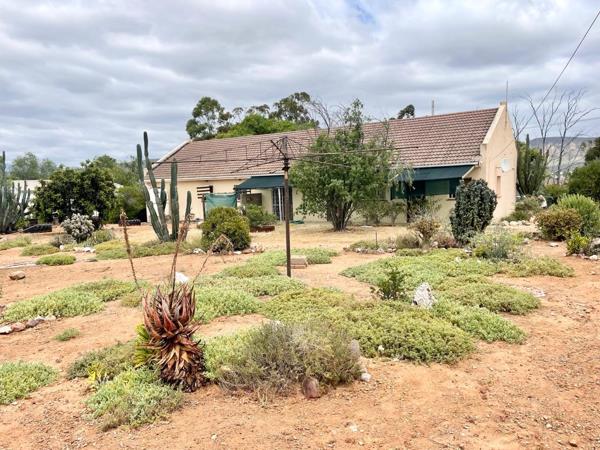 Sole Exclusive Mandate. Viewings are strictly by appointment. This three bedroom family home has large reception areas and a large garden filled with indigenous plants. The established shaded front garden is a welcome retreat in the warm summers. The architectural style is post modern and suits the interior design swing back to late 70s80s perfectly. The home shows off mountain views in both directions. East views are of the Red Stone hills over farm land, and the West views, through large picture windows, are of the Rooiberge and the Swartberg. The front stoep is in shade in Summer and sunny in winter and gets a lovely breeze and spectacular sunset views.