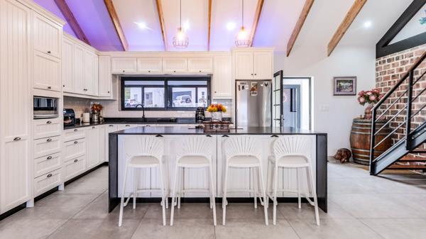 The open plan kitchen and living area flow effortlessly together, enhanced by high-pitched ceilings that creates a sense of space and light. Two indoor braai areas make this home perfect for relaxed entertaining with great views in any season of the year.