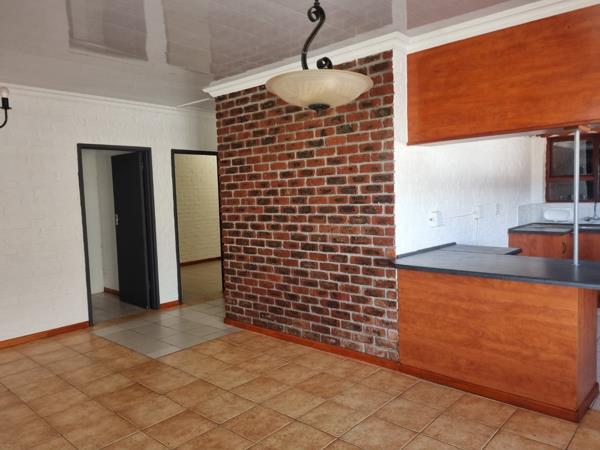 Step inside to an open-plan tiled living area, seamlessly connecting the lounge, dining space, and kitchen. The two well-sized bedrooms come with built-in cupboards and blinds, sharing a bathroom.
