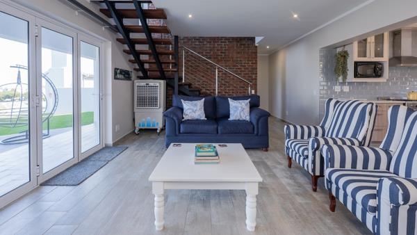 The living areas are generous and open, flowing naturally into a contemporary kitchen that forms the heart of the home. Multiple entertainment spaces set this property apart, including two indoor braai areas as well as a gas braai that opens onto the garden ideal for hosting gatherings in any season. The expansive boat garage offers ample room for boats, vehicles, or additional storage.