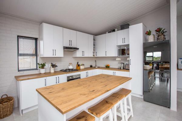 The house is designed to optimize the protected area, visible right from your spacious lounge and the outdoor wooden deck perfect for savoring morning coffee or hosting unforgettable sunrises. The heart of this home is its stylish kitchen, complete with a scullery and an indoor braai that seamlessly connects with the open-plan living area. This is where laughter will echo, and countless cherished memories will be made.