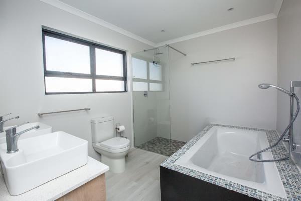 Dual Mandate: Brand new home Featuring four bedrooms, three bathrooms, a double garage, and a fantastic covered braai area, this home is ready for its first owners. Enjoy vinyl flooring, Hansgrohe fixtures, and a stylish kitchen with Caesarstone tops and Folkstone Grey melamine cupboards.