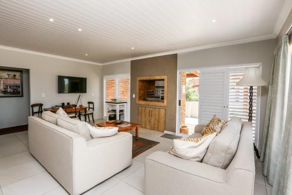 The interior showcases beautiful and pleasant finishes that create a welcoming, comfortable atmosphere throughout. The heart of the home is the open-plan living area, featuring a fantastic built-in indoor braaiperfect for entertaining year-round.