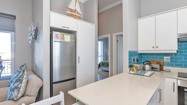 The open-plan layout seamlessly connects the kitchen and living area, maximizing the 92sqm floor space for modern living. Step out onto the balcony, complete with a built-in braai, perfect for enjoying the coastal atmosphere. The apartment also features two inviting bedrooms and a shared bathroom, offering a perfect balance of comfort and practicality.