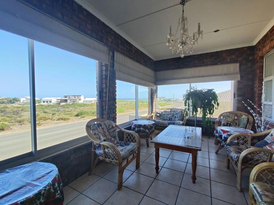 Exceptional and well-positioned house in Struisbaai. It will capture you at once, when entering the sunroom with majestic views of the ocean. With cornered glass windows giving you 180 degrees view of the ocean. The house is divided in two living spaces. Fitted with tiles throughout the house whilst the 2 front bedrooms with its own full bathroom are fitted with carpets. An open plan dining- and living room with chandeliers. Spacious wooden kitchen, laundry and indoor braai area.