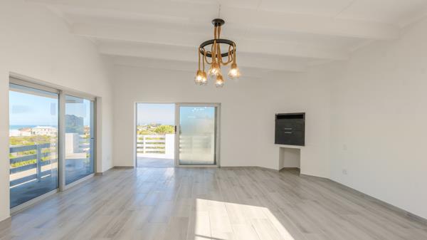 Upstairs, the spacious open-plan living area combines the kitchen and lounge into a light-filled space with modern finishes and wooden countertops. A built-in braai adds to the home''s entertaining appeal, with sliding doors which lead out onto a generous patio that captures stunning views of the ocean, a perfect spot for enjoying morning coffee or evening sunsets.