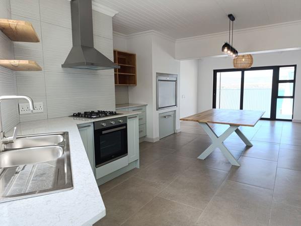 The open-plan kitchen flows seamlessly into the spacious lounge area, creating an inviting environment for relaxed living and effortless entertaining. Large sliding doors lead out onto an expansive balcony with breathtaking views over the beautiful Breede River the ideal setting for morning coffees, sundowners, or simply unwinding while taking in the tranquil surroundings.