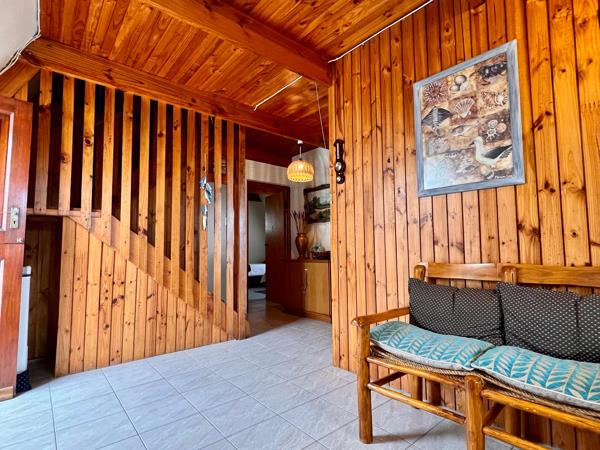 Downstairs, youll find three generously sized bedrooms, all fitted with clothes cupboards, tiled flooring, and a well-appointed bathroom. An informal lounge downstairs provides the perfect spot to relax with a book or unwind after a day of exploring.