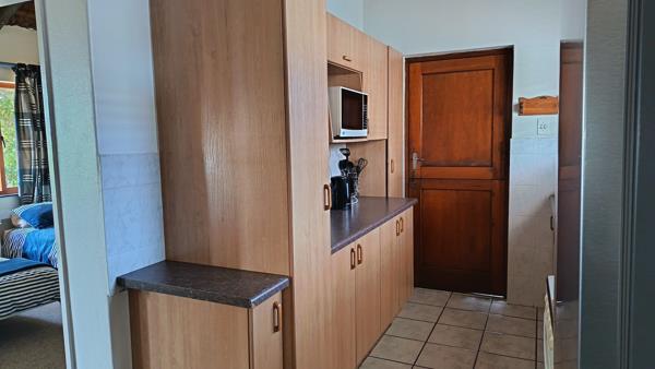 Inside, youll find a neat and functional layout featuring a full bathroom with bath, shower, basin, and toilet. The practical kitchen is equipped with a gas geyser, gas hob, and electric ovenperfect for energy-efficient, everyday cooking. The open-plan lounge and dining area creates a bright, airy space for relaxing or entertaining.