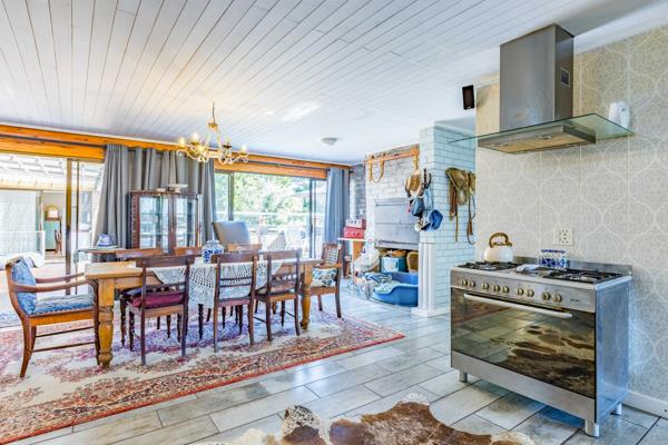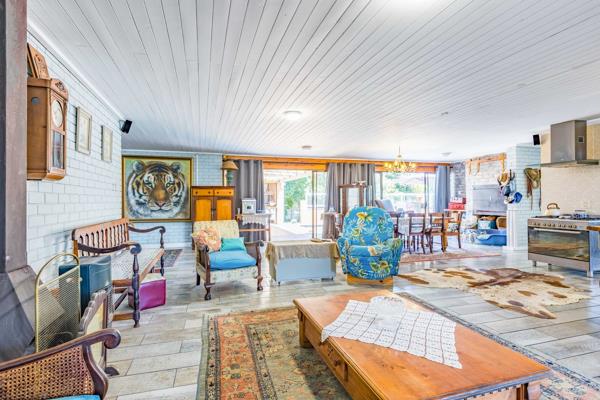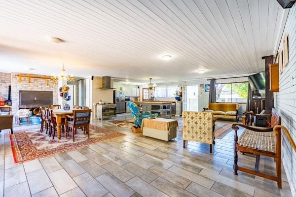 The vast living area-kitchen/living/dining/braai/tv-all open via double sliders onto the north-facing pool area with a roofed area for the tinies.