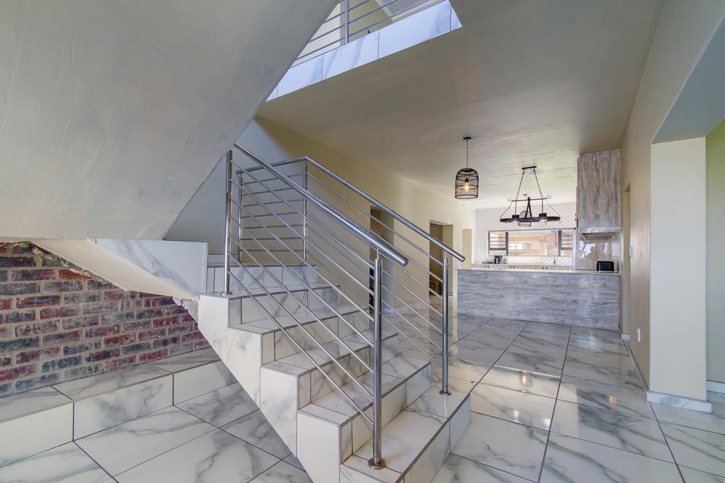 Ornate stairs lead up to a space which can be utilised as a cosy pyjama lounge. This central space offers direct access to the generous master bedroom with en-suite bathroom and stacker doors leading to a private balcony and the three expansive guest bedrooms, sharing a bathroom. All bedroom have built-in-cupboards. An added addition to the first floor, is the sizeable entertainment room, with the option to be transformed into a movie room or games room for the cooler evenings. Access to a smaller sea facing balcony is gained through this room