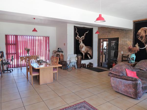 The second home which is currently being rented out as a self-catering unit last year provided an income of approx. R240 000!!! Downstairs you have an open plan kitchen with stove, oven and microwave with built in cupboards, dining room and lounge with tv. Off the kitchen is a full bathroom and one bedroom. Upstairs you have 2 more bedrooms all en-suite. From the lounge you enter into the beautifully built indoor braai area with a large well maintained indoor swimming pool with ample space around the pool to relax. On the opposite side you have a small kitchenette with 3 bedrooms all en-suite.