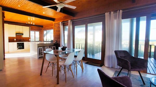 Tucked just two plots back from the shoreline, this character-filled timber frame homeclad in half-log both inside and outoffers a peaceful coastal retreat just moments from the sea. The property boasts gorgeous wooden floors, an open-plan layout with a relaxed, unfussy flow between the kitchen, dining and living areas, and sliding doors that lead out onto covered, almost wraparound timber decksideal for all-weather enjoyment. Downstairs youll find a cosy bedroom and a bathroom, while upstairs offers two beautifully appointed en suite bedrooms, each opening onto their own private balcony with stunning views. One of the bathrooms is especially exquisite, designed to take full advantage of the natural surroundings. Thoughtfully designed features include a charming reading nook under the stairwell and the shelter of under-roof deckingperfect for embracing the changing moods of the coastal weather. Situated less than 300 metres from the waterfront, this home offers an immersive experience of the unique UNESCO Floral Kingdom & designated Kogelberg Biosphere. Its a nature lovers dream: tranquil, soothing, and infused with natural materials and timeless simplicity.