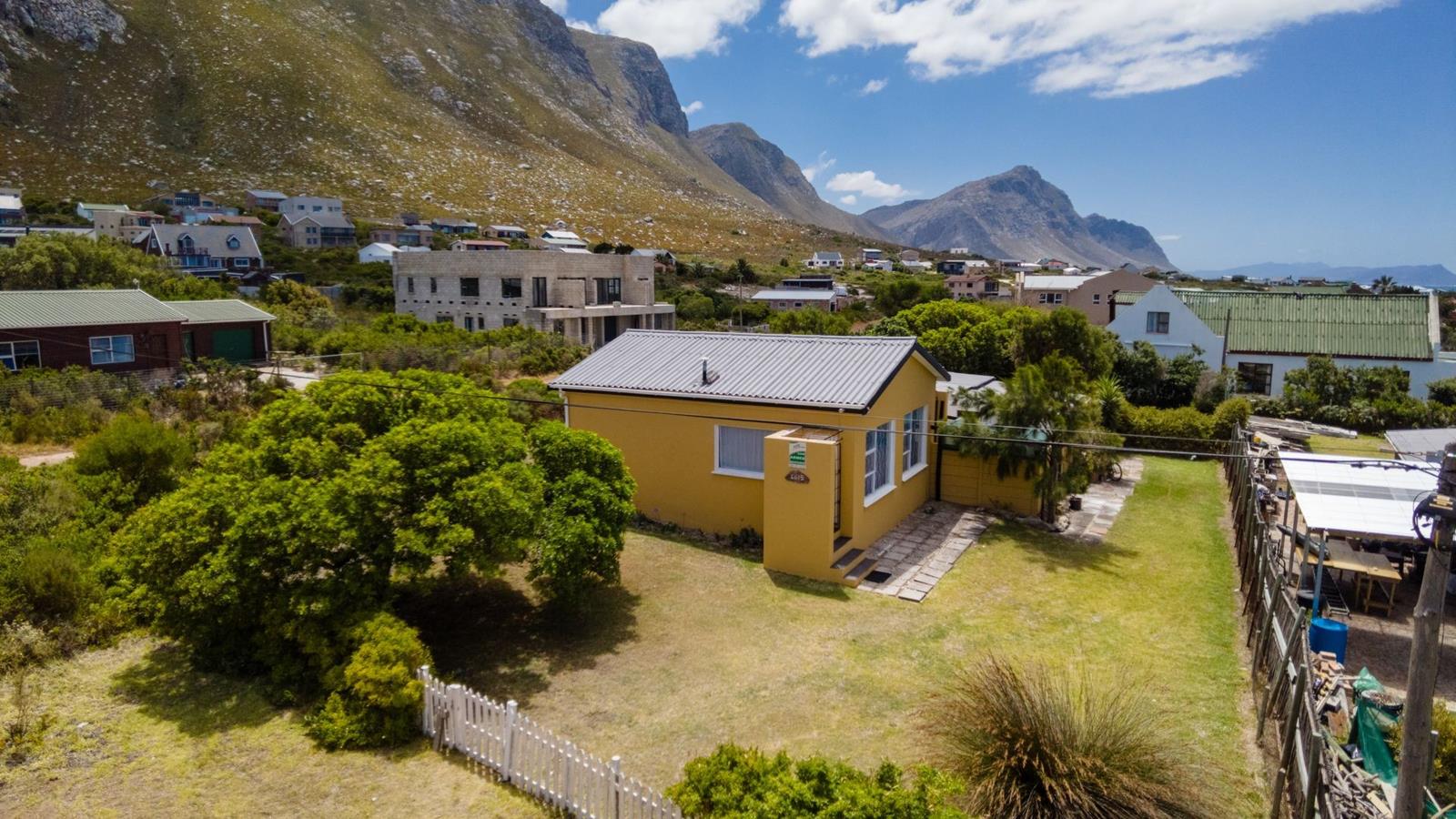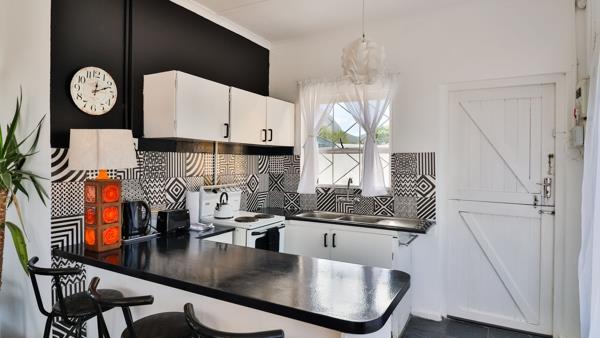 Open-plan living area with wood-burnerkitchen with lovely views of Blesberg from the living area window.