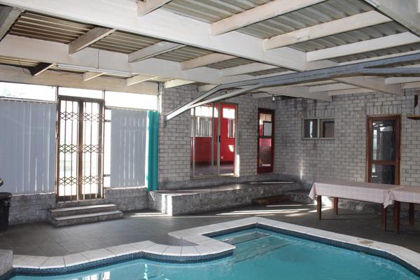 From the living area there is an easy flow to the very large enclosed entertainment area with heated swimming pool and built in braai area.