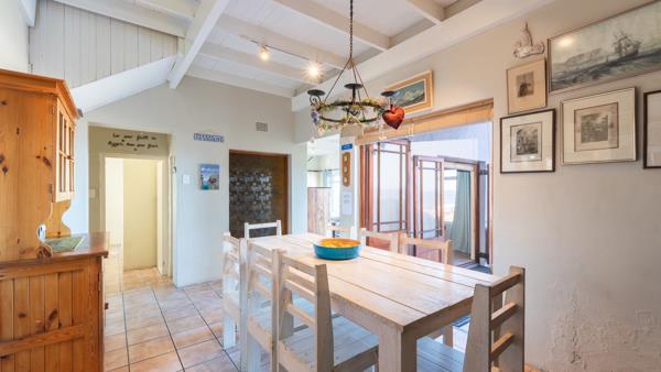 Downstairs a protected stoep with a braai where you can entertain and enjoy your summer evenings. The main living area, from where you can watch the winter waves splashing on the rocks, is also equipped with a fireplace. The upstairs area has a very spacious bedroom, lounge cum kitchen nook, bathroom and study. This can be used as a separate unit like the flat / servant''s quarters at the back of the double garage. 2 smaller store rooms / pantries inside the house for storage of all kinds of equipment. Don''t let his opportunity pass you by.