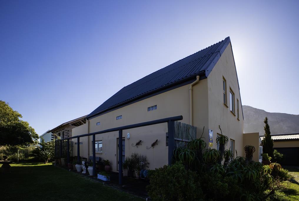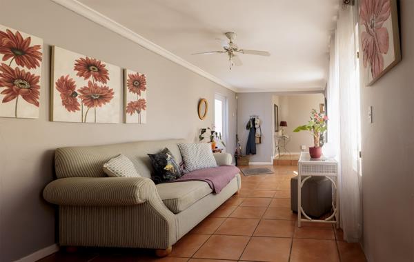 The left wing of this house for sale in Betty''s Bay features three ensuite bedrooms, each with double basins and doors leading out to a large, sheltered courtyard. It functions as a separate guest area, offering privacy from the main residence and ideal conditions for rental income or dual-living. The outdoor space is ideal for entertaining, with a built-in braai and protection from the wind.
